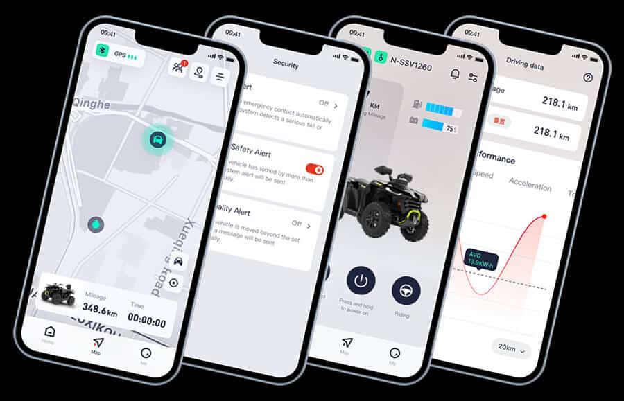 Hjólið skilar gögnum í rauntíma yfir í appið, svo þú getur fylgst með til dæmis togi, nýttum hestöflum og hraða á meðan þú ert í túrnum. Í appinu er haldið utan um keyrða km. Þú getur tengst öðrum Segway hjólum í appinu og fylgst með staðsetningu þeirra á korti.