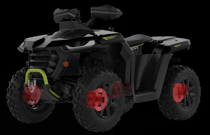 Mismunadrif að bæði framan og aftan gerir hjólin mun mýkri í akstri, léttari í stýri og stöðugri á vegi. Bæði drifin eru svo læsanleg, í sitthvoru lagi að framan og aftan, svo þú getur drifið hvert sem er og losað þig úr öllum aðstæðum.